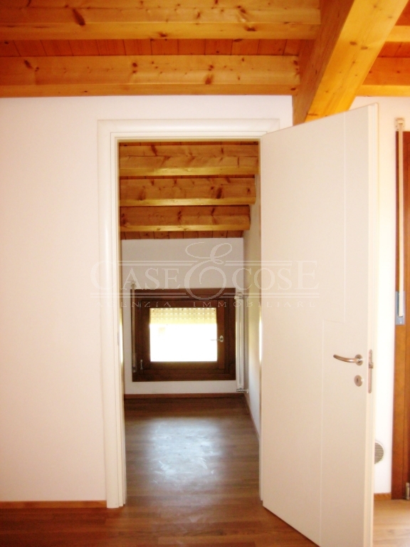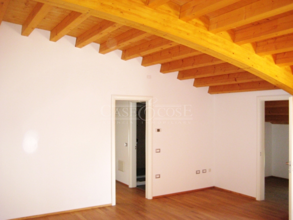 Appartamento al piano secondo, con bellissima travatura in legno a vista. Ampia zona giorno affacciata su pittoresca terrazza. Ripostiglio/dispensa, bagno, lavanderia, camera matrimoniale e camera/studio. Tranquillo quartiere residenziale a due passi dal centro!