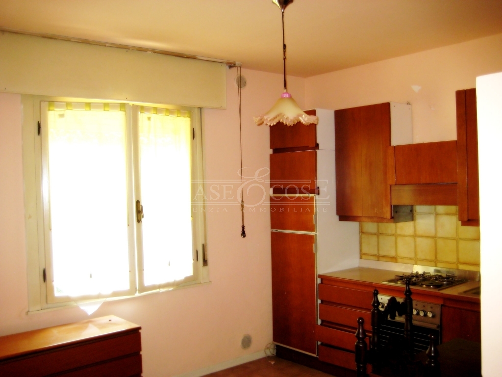Appartamento, in parte da rinnovare, zona centro. Soggiorno/cucina, camera matrimoniale, camera/studio, bagno. Poggiolo. Cantina e garage. Piano terra.