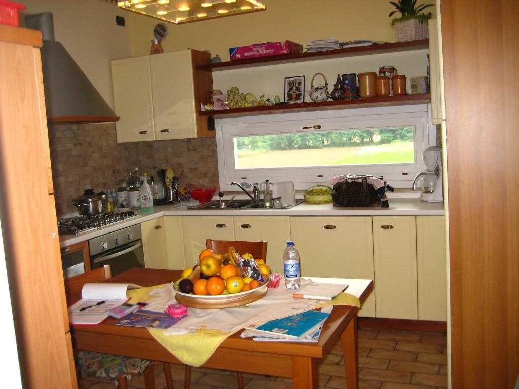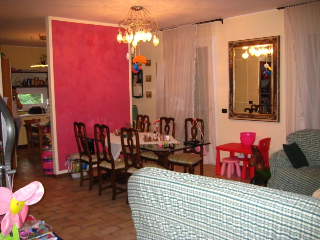 Appartamento duplex, in palazzina di poche unità abitative. Piano primo con soggiorno, cucina, bagno/lavanderia, poggiolo. Piano secondo, con travatura a vista, 3 camere e bagno, terrazza. Garage con due posti auto.